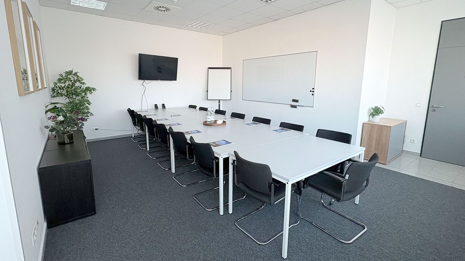 Der Raum ist funktional und modern ausgestattet und bietet Tische sowie flexible Bestuhlung für unterschiedliche Veranstaltungsformate. Zur technischen Ausstattung gehören ein Fernseher mit HDMI- und AirConnect-Anschluss, ein Whiteboard sowie ein Flipchart. Moderationskarten stehenebenfalls zur Verfügung. Sanitäranlagen befinden sich auf der selben Etage, zudem kann eine Teeküche genutzt werden. Der Raum eignet sich ideal für Besprechungen, kleinere Schulungen, Projektmeetings oder Workshops.